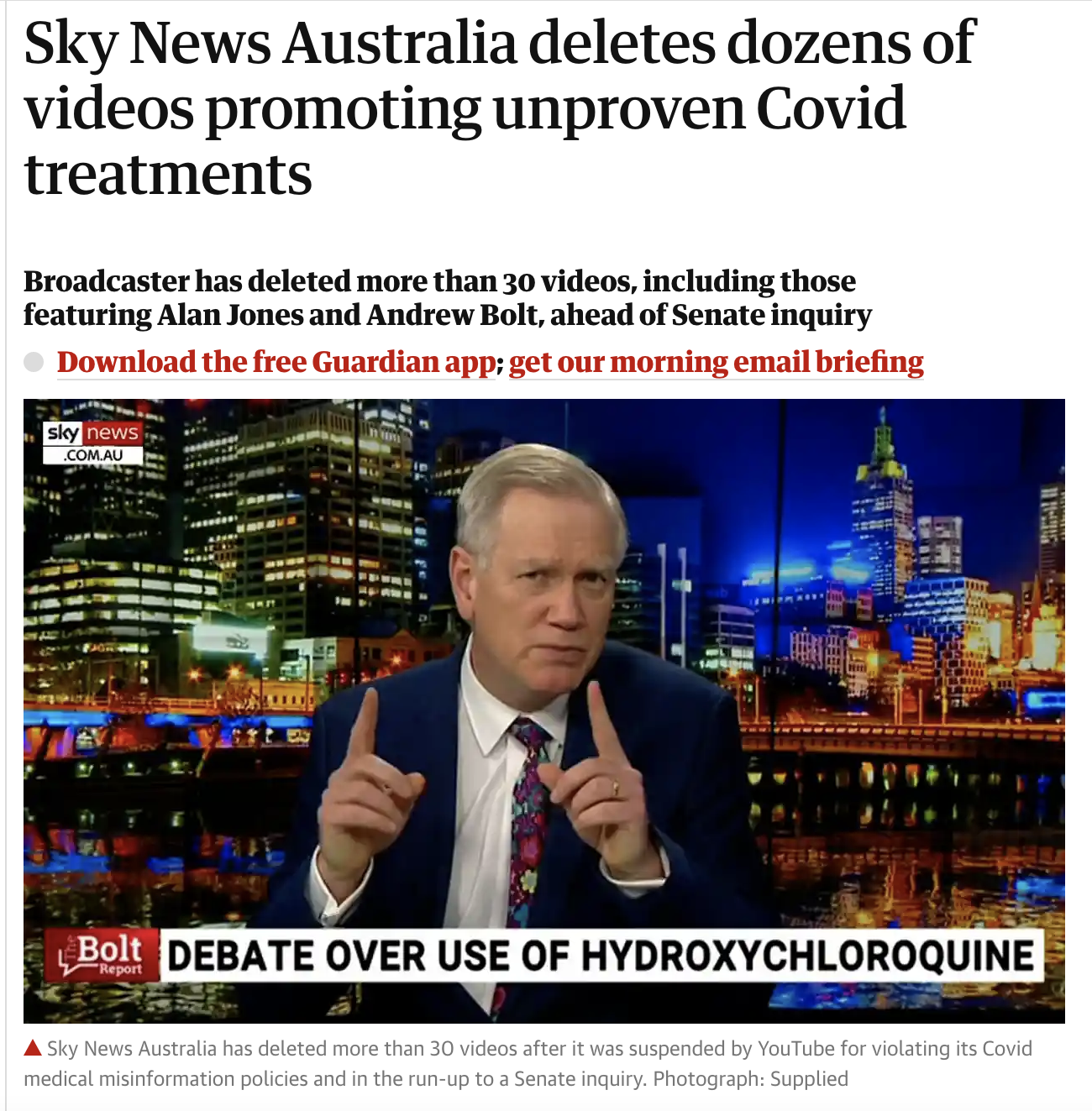 Sky News Australia Deletes Dozens Of Videos Promoting Unproven Covid Treatments Australian Media The Guardian